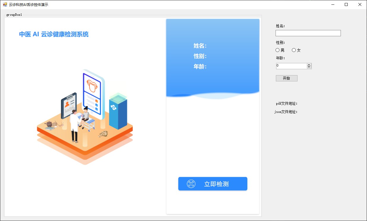 6.运行程序,调用控件带入第三方系统录入的检测人姓名、性别、年龄、疾病类别编码。